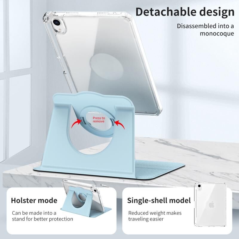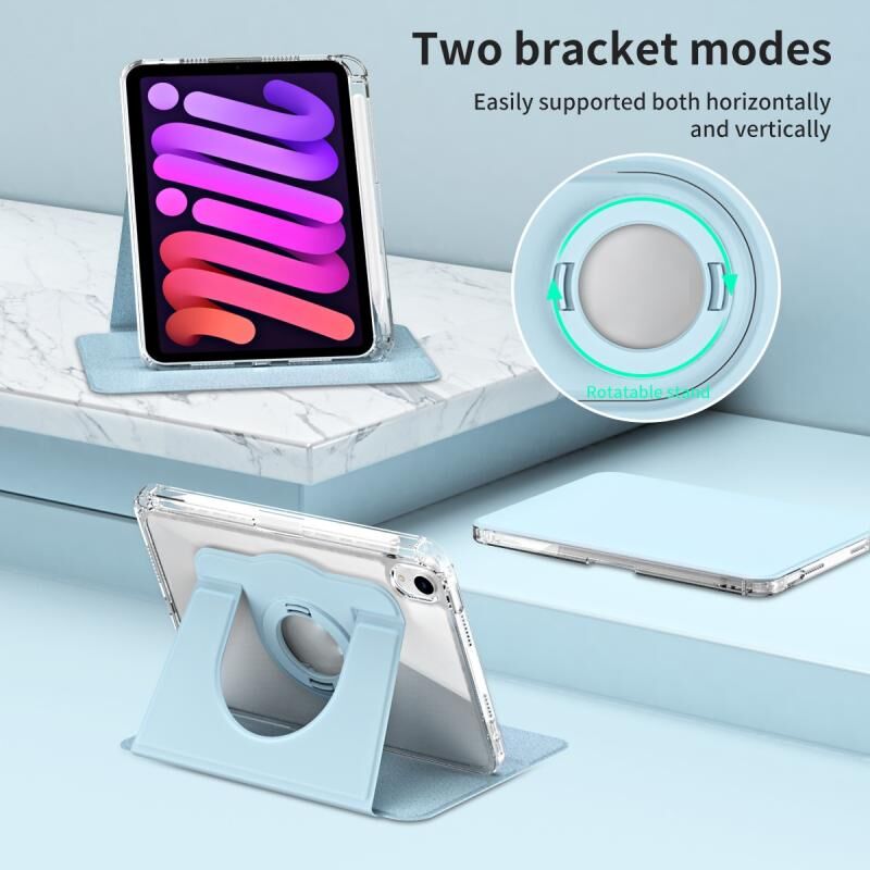 For iPad mini 6 / mini 2024 360 Rotation Detachable Clear Acrylic Leather Tablet Case(Ice Blue)