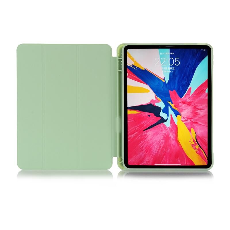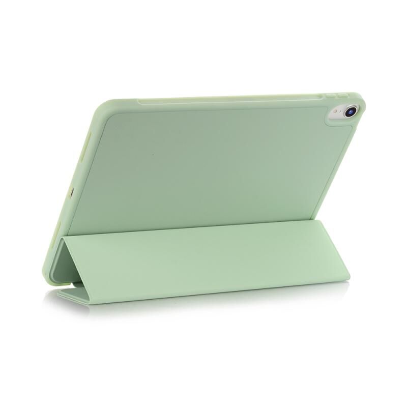 For iPad mini 6 / mini 2024 Back Sticker Skin Feel Leather Tablet Case with Tri-fold Holder(Grass Green)