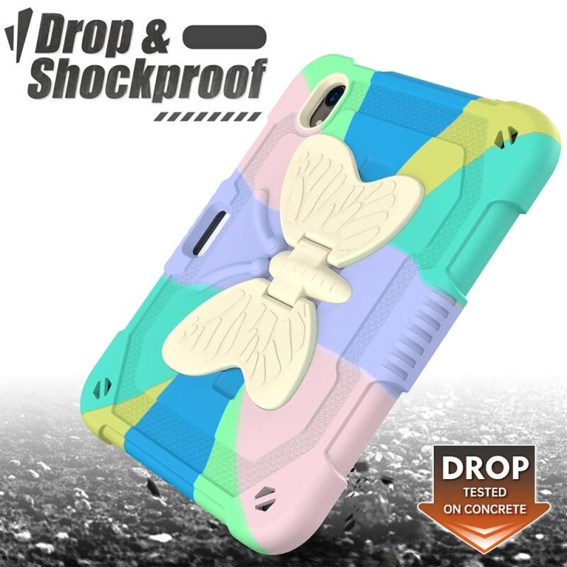For iPad mini 6 / mini 2024 Beige PC + Silicone Anti-drop Protective Tablet Case with Butterfly Shape Holder & Pen Slot(Colorful Green)
