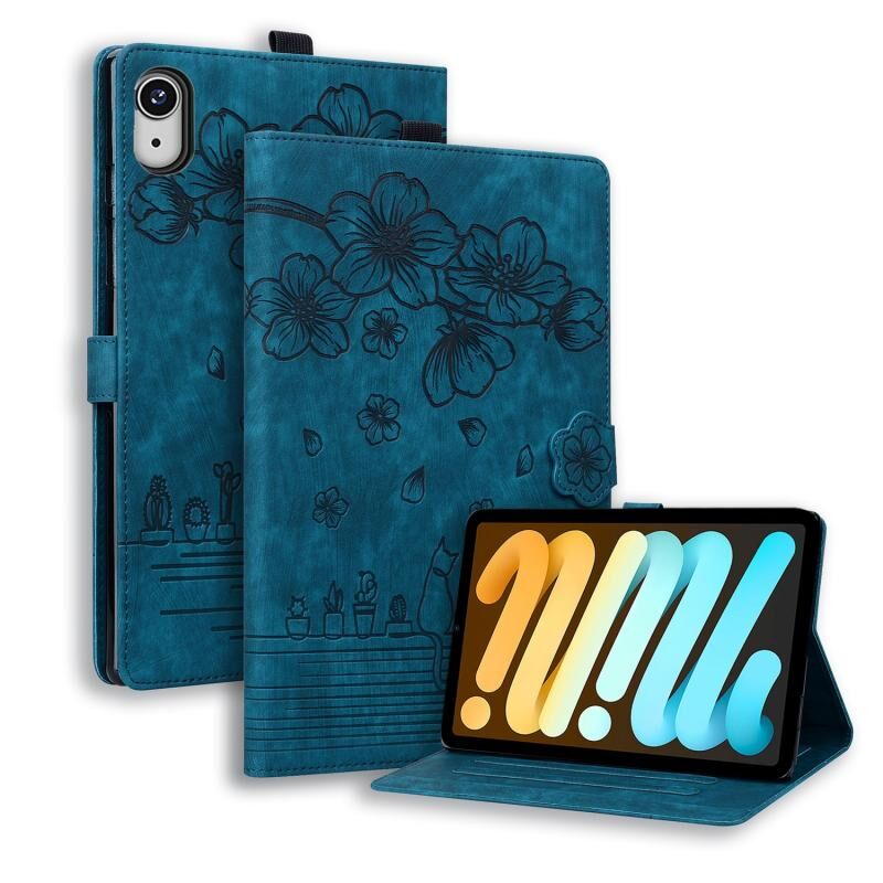 Θήκη για iPad mini 6 / mini 2024 με σχέδιο κινούμενων σχεδίων Sakura Cat, ανάγλυφη, έξυπνη δερμάτινη θήκη (Μπλε)