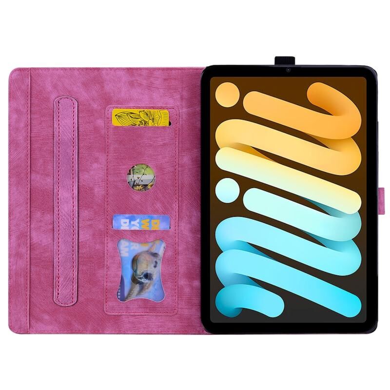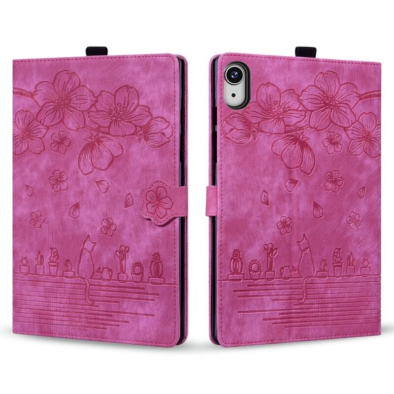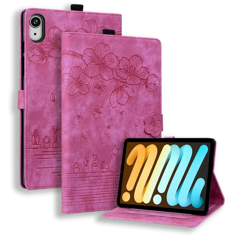 Θήκη ταμπλέτας από δέρμα με ανάγλυφο σχέδιο κινούμενων σχεδίων Sakura Cat για iPad mini 6 / mini 2024 (Κόκκινο Ρόδο)