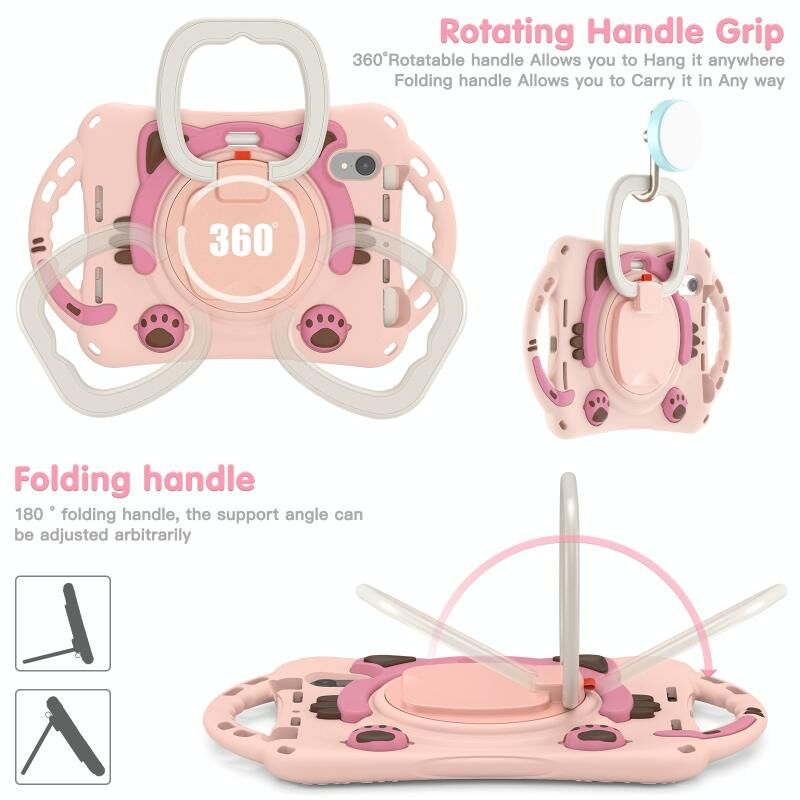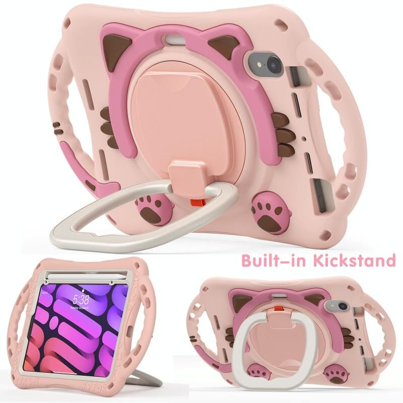 For iPad mini 6 / mini 2024 Cute Cat King Kids Shockproof Silicone Tablet Case with Holder & Shoulder Strap & Handle(Pink)