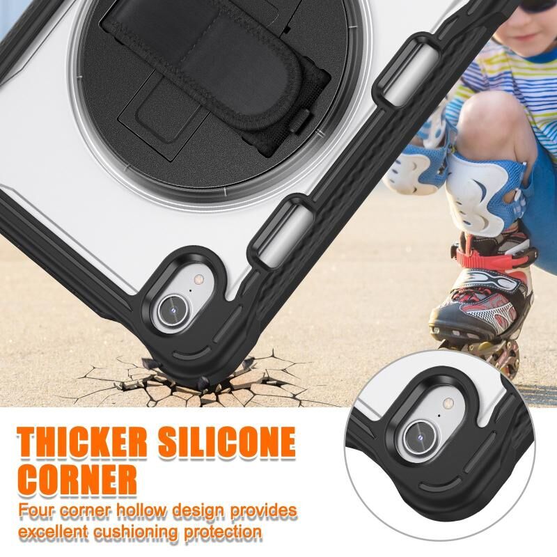 For iPad mini 6 / mini 2024 Heavy Duty Hybrid Tablet Case with Hand Grip & Strap(Black)