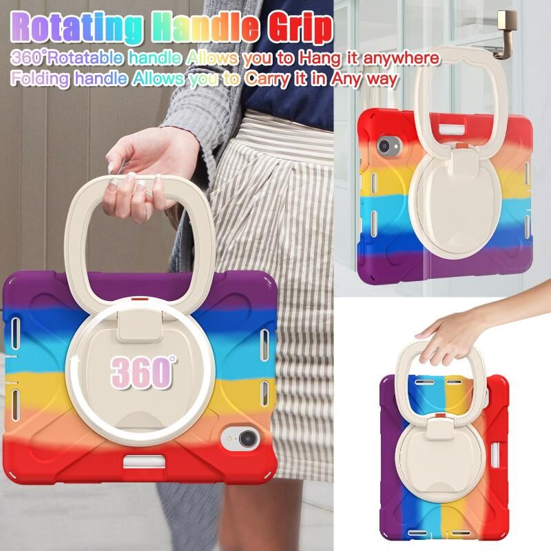 For iPad mini 6 / mini 2024 Heavy Duty Silicone Hybrid PC Tablet Case with Holder & Shoulder Strap(Colorful Red)