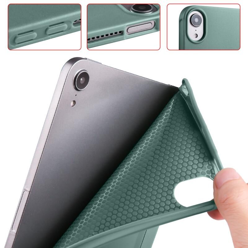 For iPad mini 6 / mini 2024 Honeycomb TPU Leather Tablet Case with 3-Folding Holder(Pine Green)