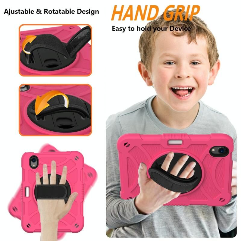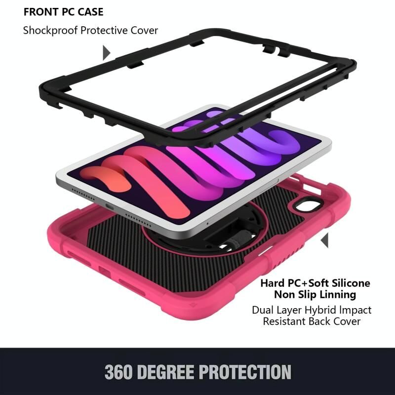 For iPad mini 6 / mini 2024 PC Hybrid Silicone Tablet Case with Holder & Hand Strap & Shoulder Strap(Rose Red)