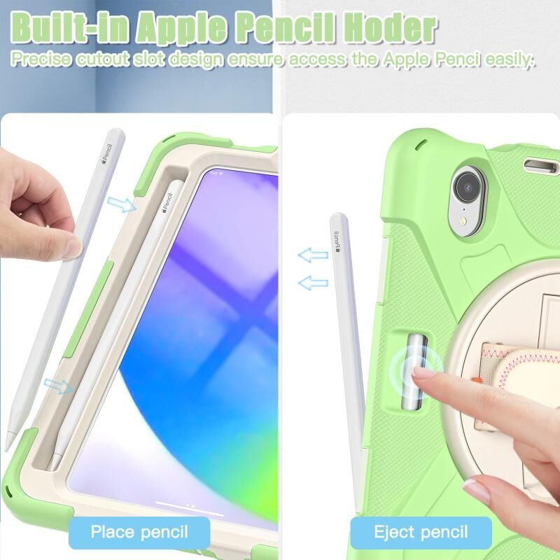 For iPad mini 6 / mini 2024 Silicone Hybrid PC Tablet Case with Grip Holder & Shoulder Strap(Matcha Green)