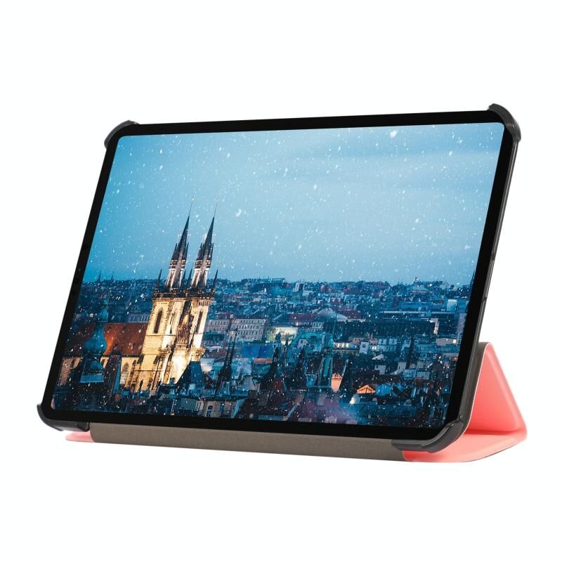 For iPad mini 6 / mini 2024 Skin Texture TPU Leather Tablet Case with 3-folding Holder(Pink)
