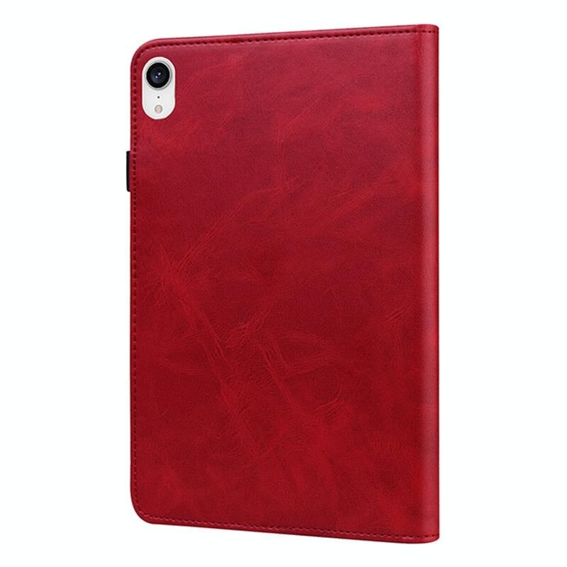 For iPad mini 6 / mini 2024 Solid Color Embossed Striped Leather Case(Red)