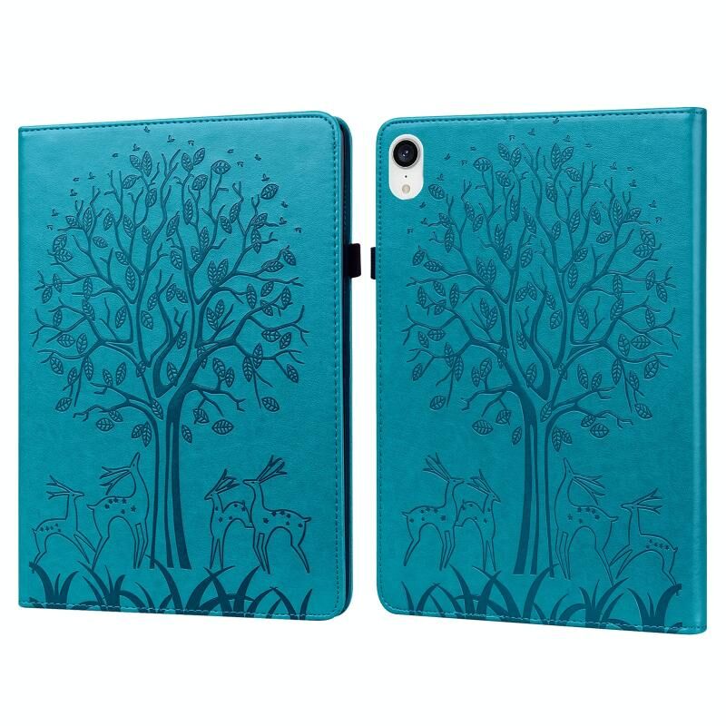 For iPad mini 6 / mini 2024 Tree & Deer Pattern Pressed Printing Leather Tablet Case(Blue)