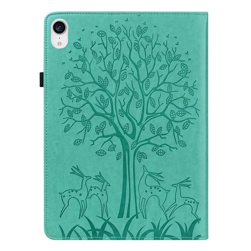 For iPad mini 6 / mini 2024 Tree & Deer Pattern Pressed Printing Leather Tablet Case(Green)