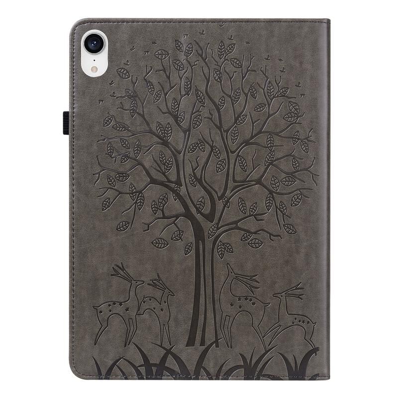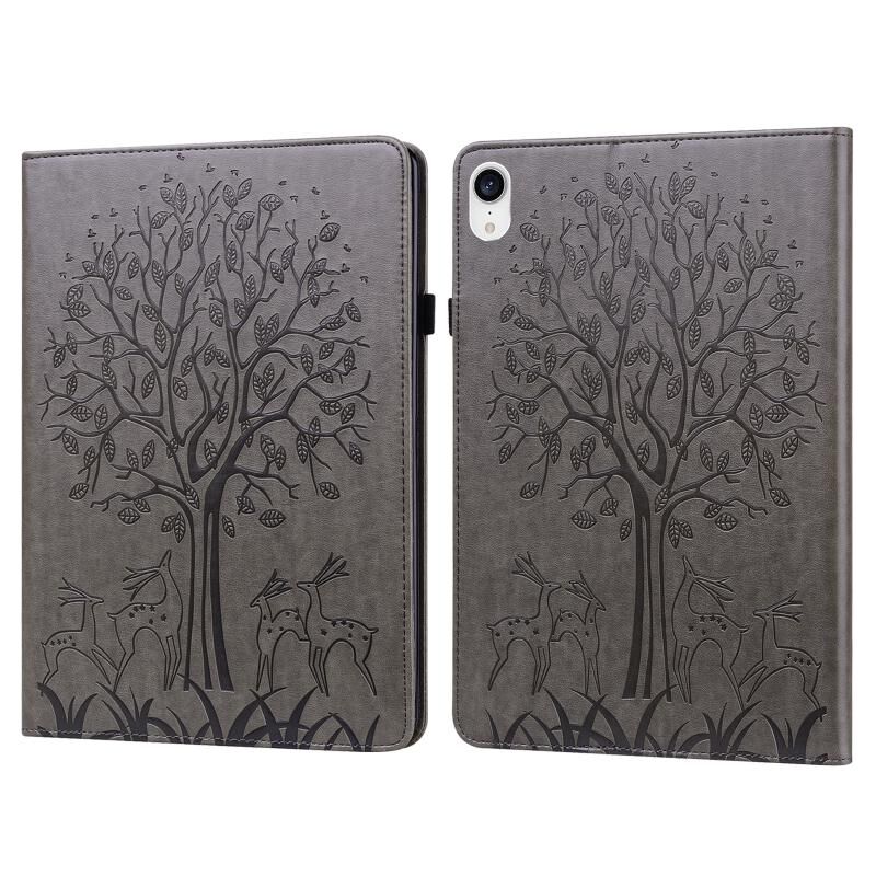 For iPad mini 6 / mini 2024 Tree & Deer Pattern Pressed Printing Leather Tablet Case(Grey)