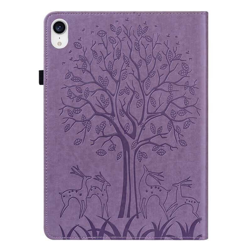 For iPad mini 6 / mini 2024 Tree & Deer Pattern Pressed Printing Leather Tablet Case(Purple)