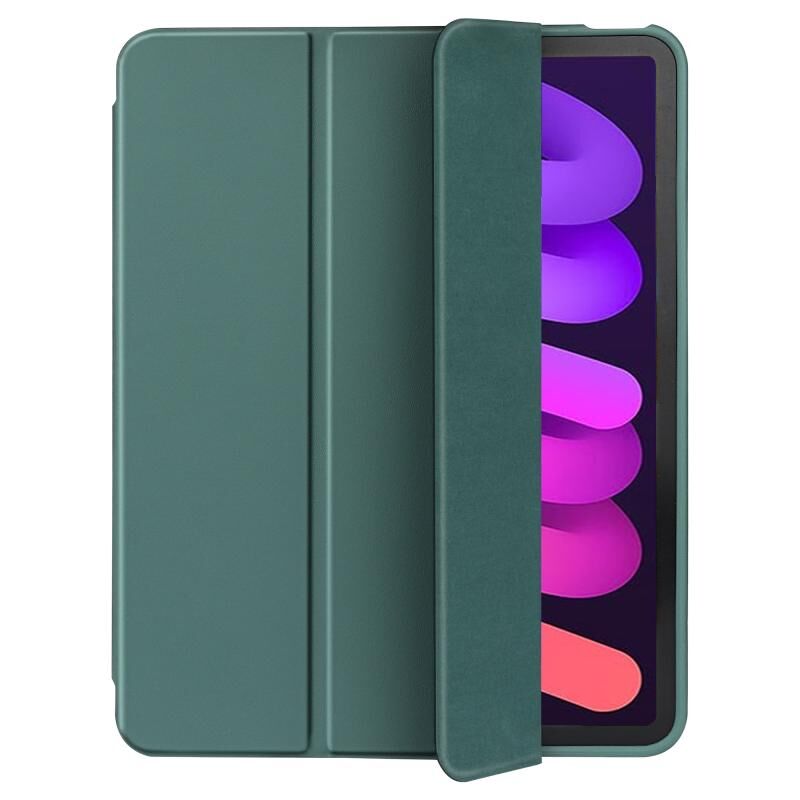 For iPad mini 6 / mini 2024 Tri-Fold Holder Leather Smart Tablet Case(Dark Green)