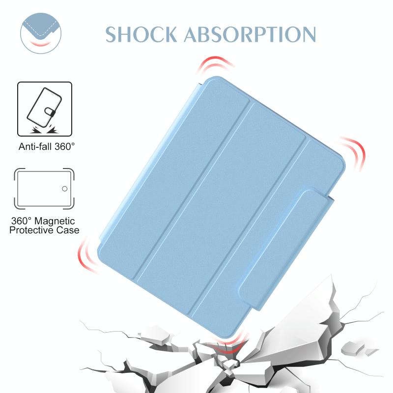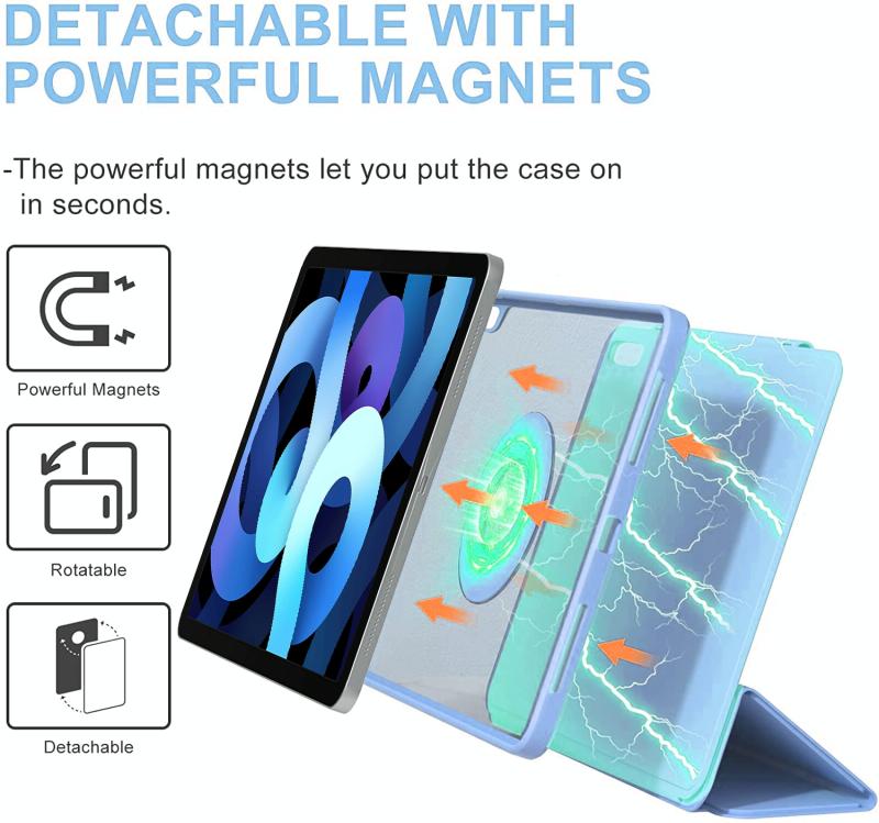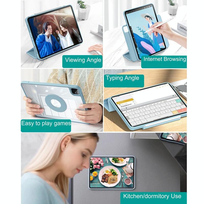 2. Ειδικός Σχεδιασμός: Αποσπώμενο μαγνητικό κάλυμμα μπορεί να κρατήσει την οθόνη σας καλυμμένη, διπλώστε το σε βάση με λειτουργίες προβολής, γραφής και πορτρέτου. Πολλαπλές γωνίες βάσης όπως γωνίες προβολής, ανάγνωσης και πληκτρολόγησης. Η πίσω πλευρά TPU με ισχυρό μαγνήτη μπορεί να προσαρτηθεί εύκολα σε μεταλλικές επιφάνειες όπως ψυγεία και λευκούς πίνακες. Φέρτε περισσότερη απίστευτη ευκολία στη ζωή σας, όπως μελέτη, γιόγκα, μαγείρεμα και μπάνιο.