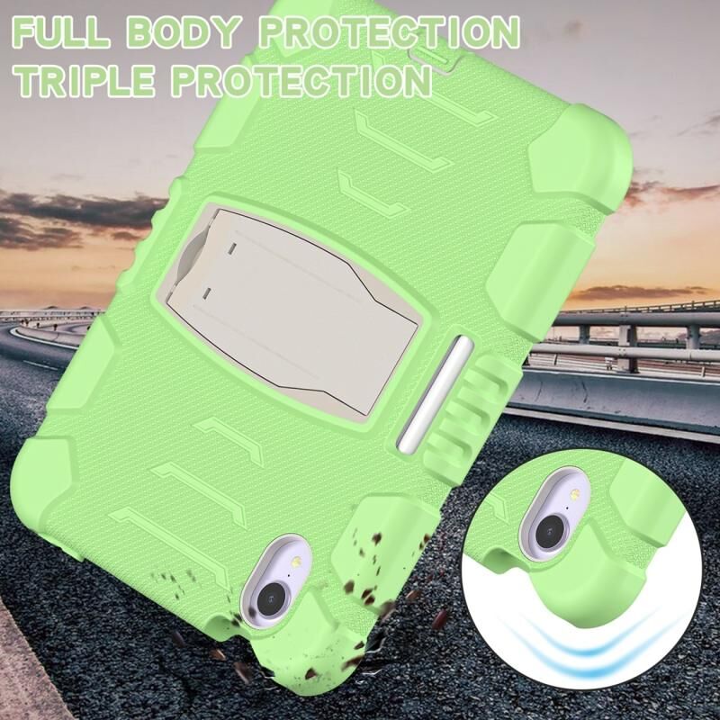 For iPad mini 6 / mini 2024 Tri-Layer Protection Screen Frame Heavy Duty PC Hybrid Silicone Case with Holder(Matcha Green)