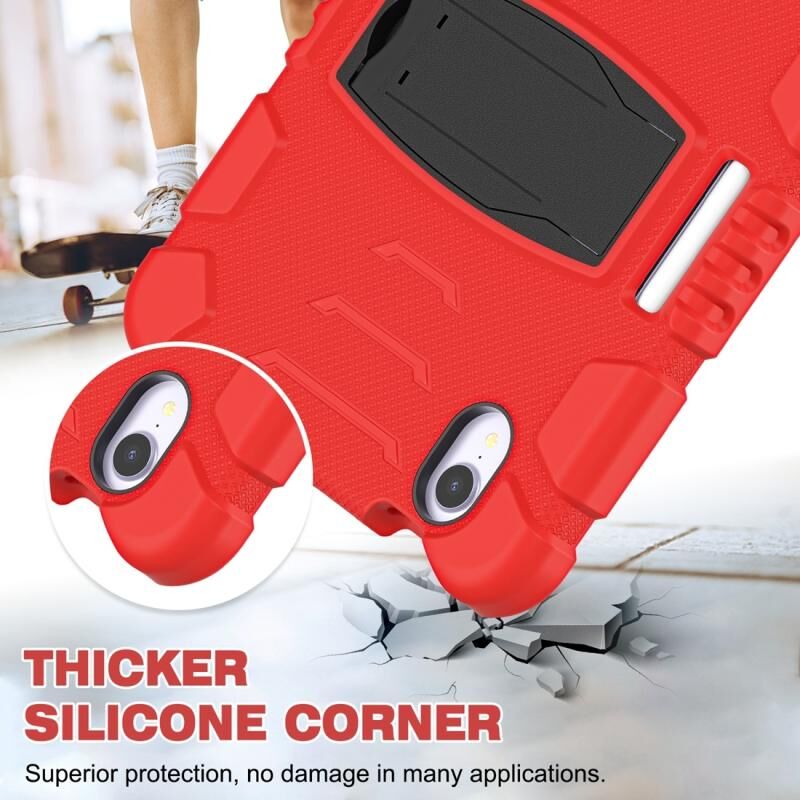 For iPad mini 6 / mini 2024 Tri-Layer Protection Screen Frame Heavy Duty PC Hybrid Silicone Case with Holder(Red+Black)