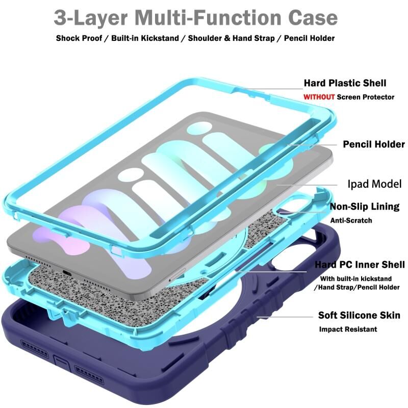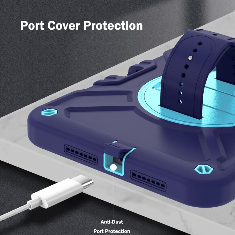 Για iPad mini 6 / mini 2024 X Rotation PC υβριδική θήκη σιλικόνης για tablet με λουράκι (Navy Sky Blue)