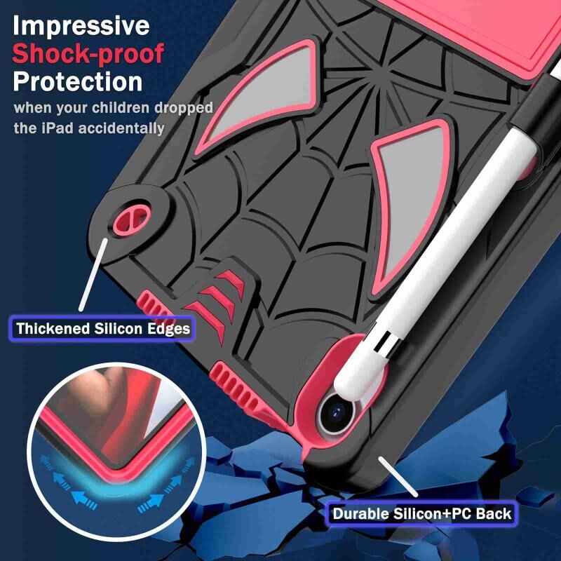 For iPad mini 6 Spider Texture Silicone Hybrid PC Tablet Case with Shoulder Strap(Black + Rose Red)
