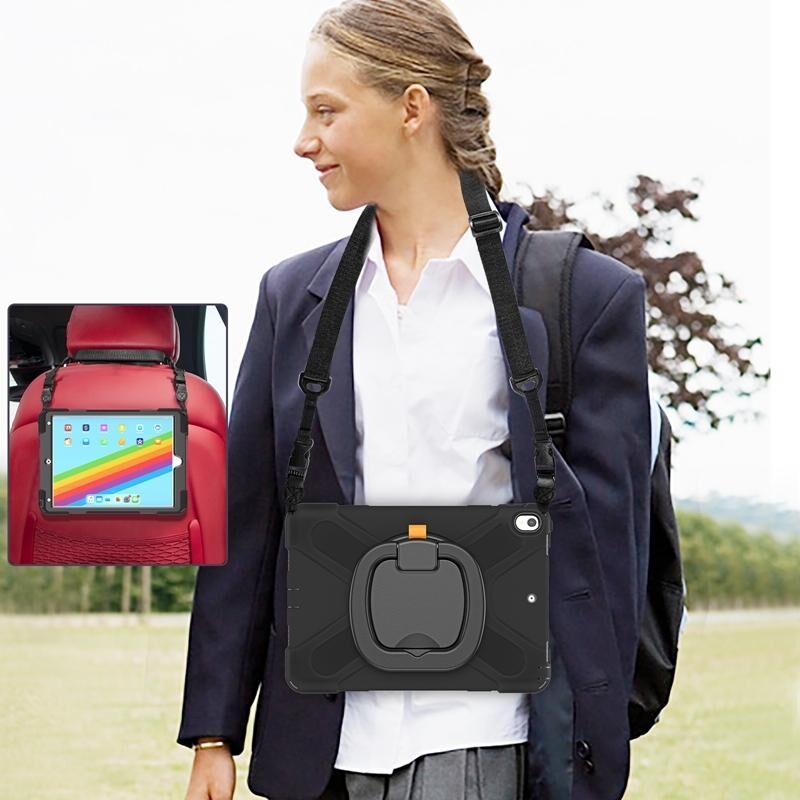 For iPad Pro 10.5 2017 / Air 10.5 2019 Silicone + PC Protective Case with Holder & Shoulder Strap(Black+Black)