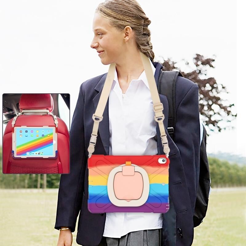 For iPad Pro 10.5 2017 / Air 10.5 2019 Silicone + PC Protective Case with Holder & Shoulder Strap(Colorful Red)