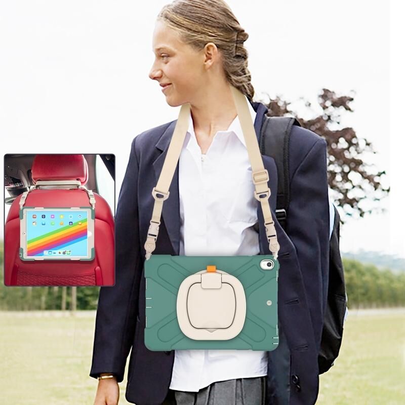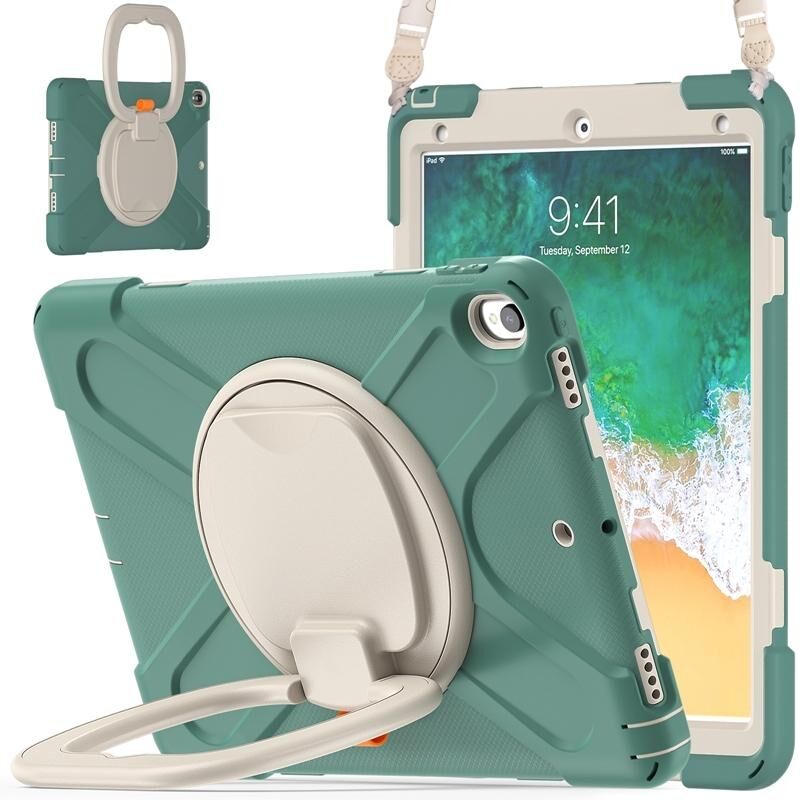 For iPad Pro 10.5 2017 / Air 10.5 2019 Silicone + PC Protective Case with Holder & Shoulder Strap(Emerald Green)