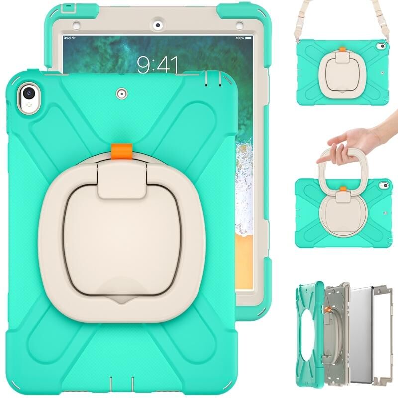 For iPad Pro 10.5 2017 / Air 10.5 2019 Silicone + PC Protective Case with Holder & Shoulder Strap(Mint Green)