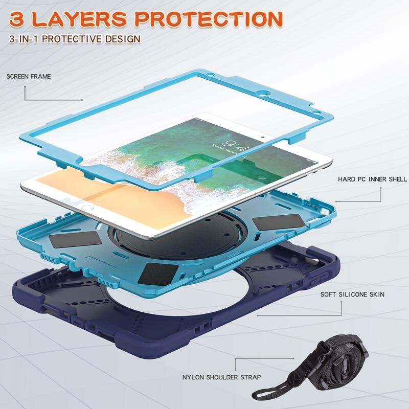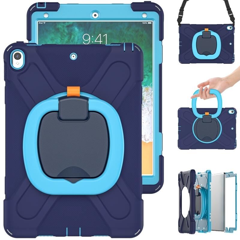 For iPad Pro 10.5 2017 / Air 10.5 2019 Silicone + PC Protective Case with Holder & Shoulder Strap(NavyBlue+Blue)