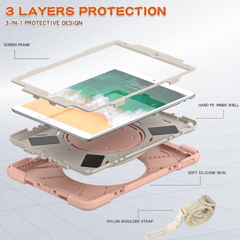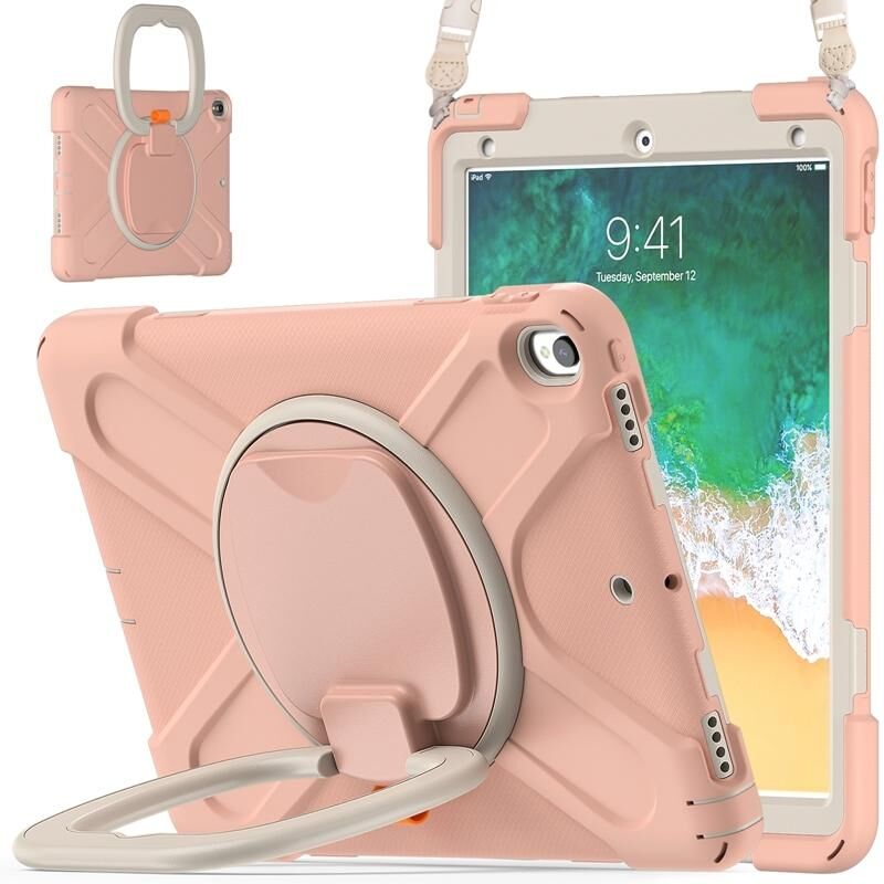 For iPad Pro 10.5 2017 / Air 10.5 2019 Silicone + PC Protective Case with Holder & Shoulder Strap(Rose Gold)