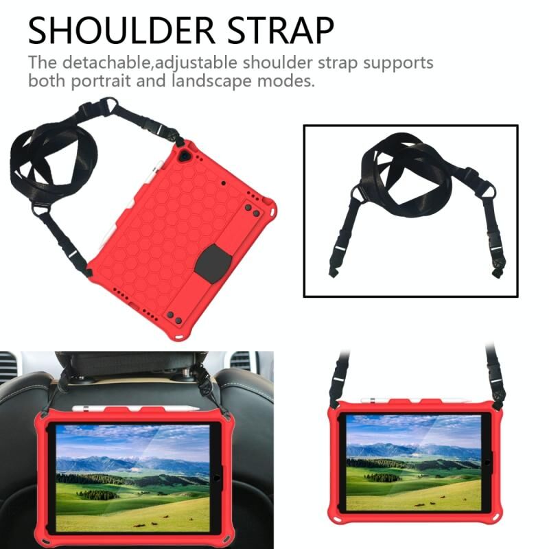 Για iPad Pro 10.5 Θήκη Προστασίας Επίπεδη με Αντικραδασμική Προστασία Τεσσάρων Γωνιών από EVA + PC σε Σχήμα Κηρήθρας με Λουρί (Κόκκινο+Μαύρο)