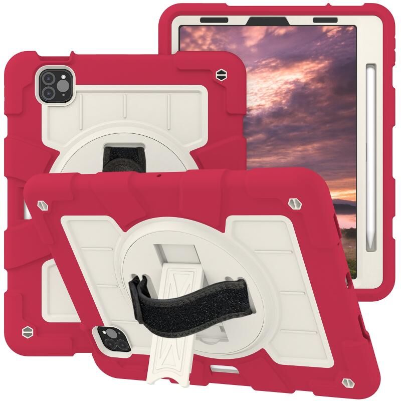 For iPad Pro 11 2018 / 2020 Silicone Hybrid PC Shockproof Tablet Case with Shoulder Strap(Feifan Magenta)