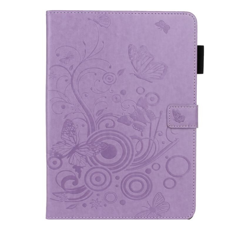 Θήκη δερμάτινη οριζόντιας αναδίπλωσης για iPad Pro 11 (2020) με σχέδιο ανάγλυφων πεταλούδων, βάση στήριξης & θήκη για κάρτες (Μωβ)