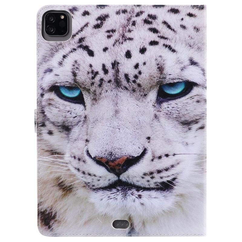 Θήκη δερμάτινη για iPad Pro 11 (2020) με οριζόντιο άνοιγμα, σε χρώμα λευκό λεοπάρδαλης, με βάση στήριξης & θήκη για κάρτες & πορτοφόλι.