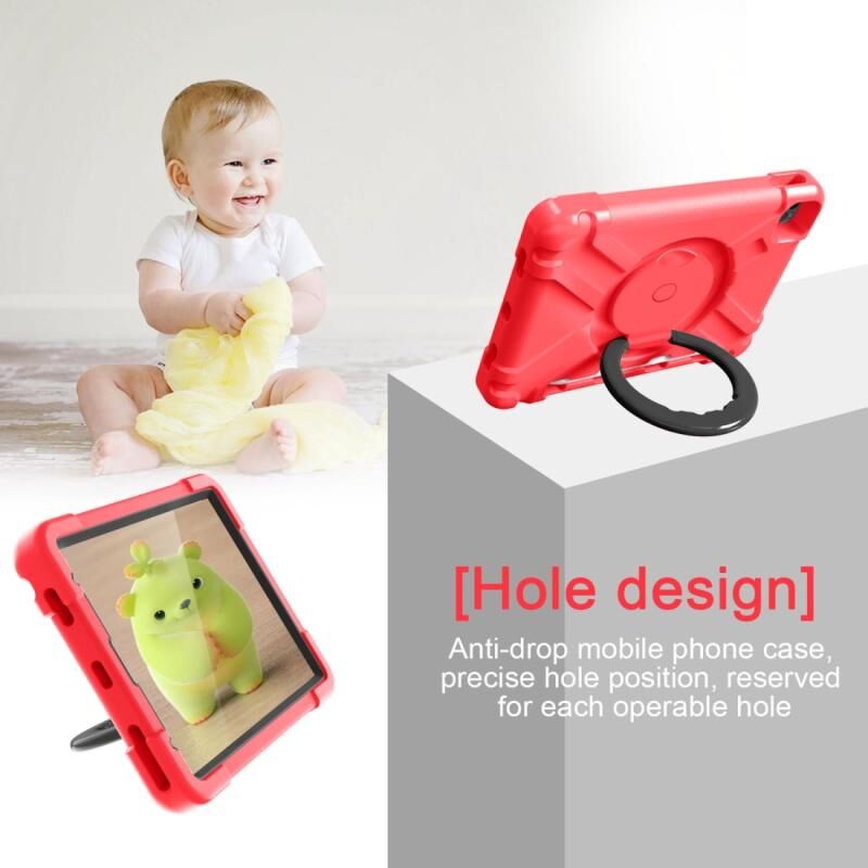 Για iPad Pro 11 (2020) Υπολογιστής + Συνδυασμός Θήκης Ταμπλέτας από Σιλικόνη Ανθεκτική στις Κραδασμούς με Περιστρεφόμενη Βάση 360 Μοιρών & Λαβή (Κόκκινο Ρόδι + Μπλε)