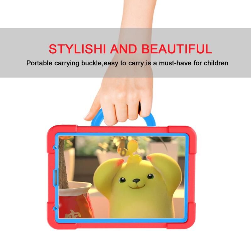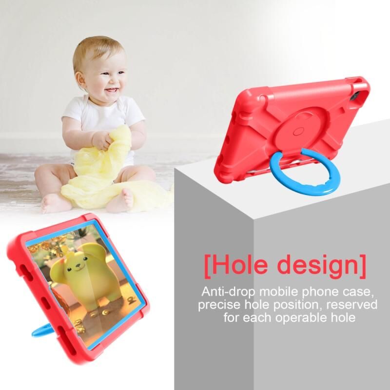 Για iPad Pro 11 (2020) Υπολογιστής + Συνδυασμός Θήκης Ταμπλέτας από Σιλικόνη Ανθεκτική στις Κραδασμούς με Περιστρεφόμενη Βάση 360 Μοιρών & Λαβή (Κόκκινο Ρόδι + Μπλε)