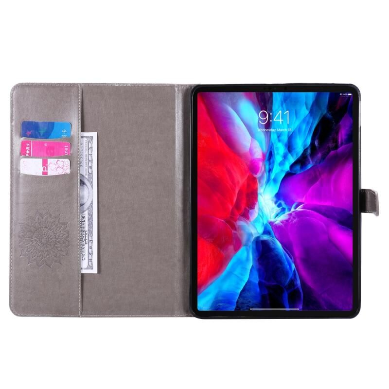For iPad Pro 11 (2020) Pressed Printing Sunflower Pattern Horizontal Flip PU Leather Tablet Case with Holder & Card Slots & Wallet(Grey)