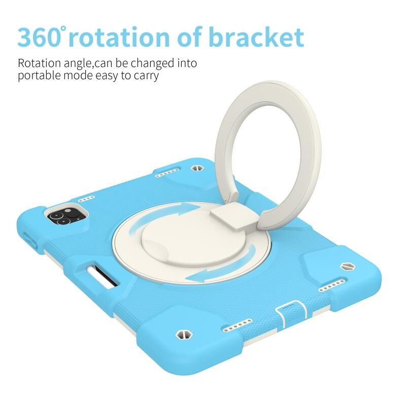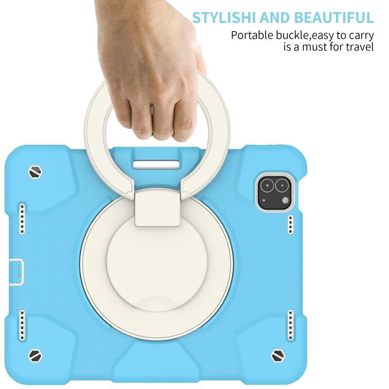 Για iPad Pro 11 2020/Pro 11 2018/Air 2020/Air 2022 Θήκη Ταμπλέτας με Πλήρη Προστασία από Σιλικόνη + PC με Στήριξη & Λουρί (Σκούρο Πράσινο)