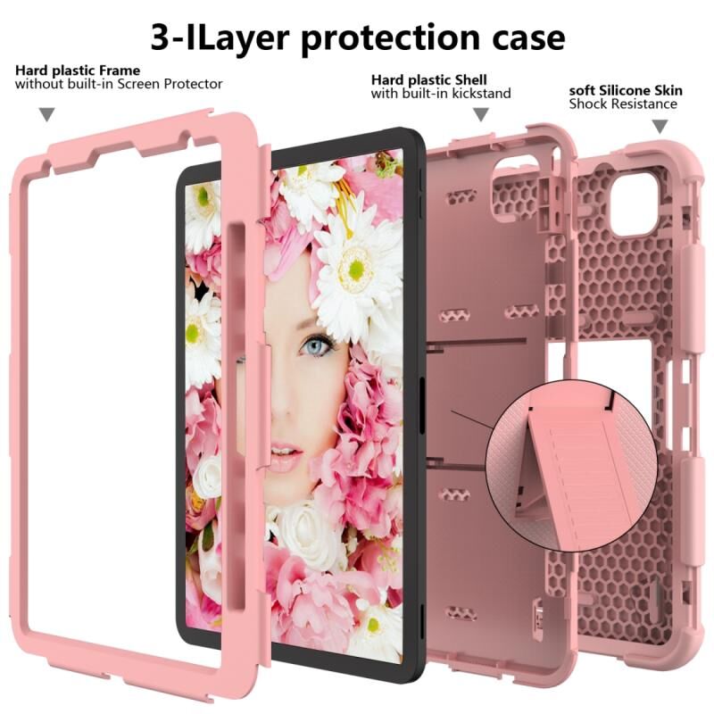 Θήκη ταμπλέτας σιλικόνης δύο χρωμάτων με προστασία από κραδασμούς και βάση στήριξης & υποδοχή για στυλό για iPad Pro 11 (2020) (Μαύρο)