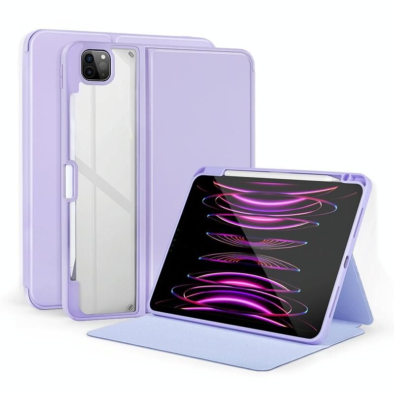 For iPad Pro 11 2022/2021/2020/2018 2-Fold Clear Acrylic Leather Tablet Case(Light Purple)