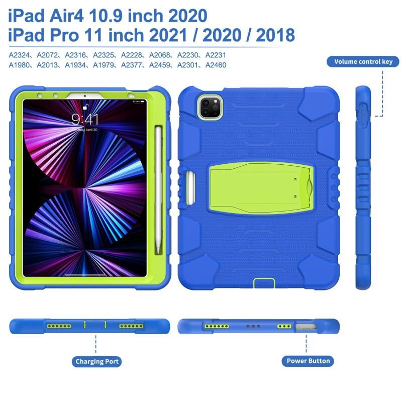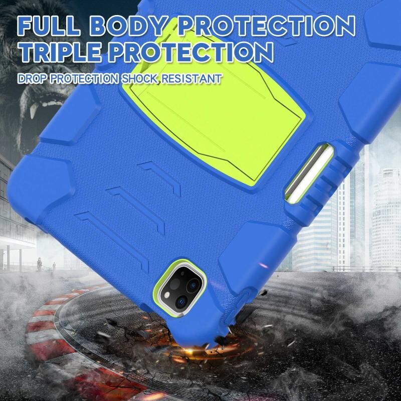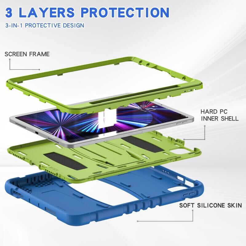 For iPad Pro 11 2022 / 2021 / 2020 / 2018 3-Layer Protection Screen Frame + PC + Silicone Shockproof Combination Tablet Case with Holder(Blue+Lime)