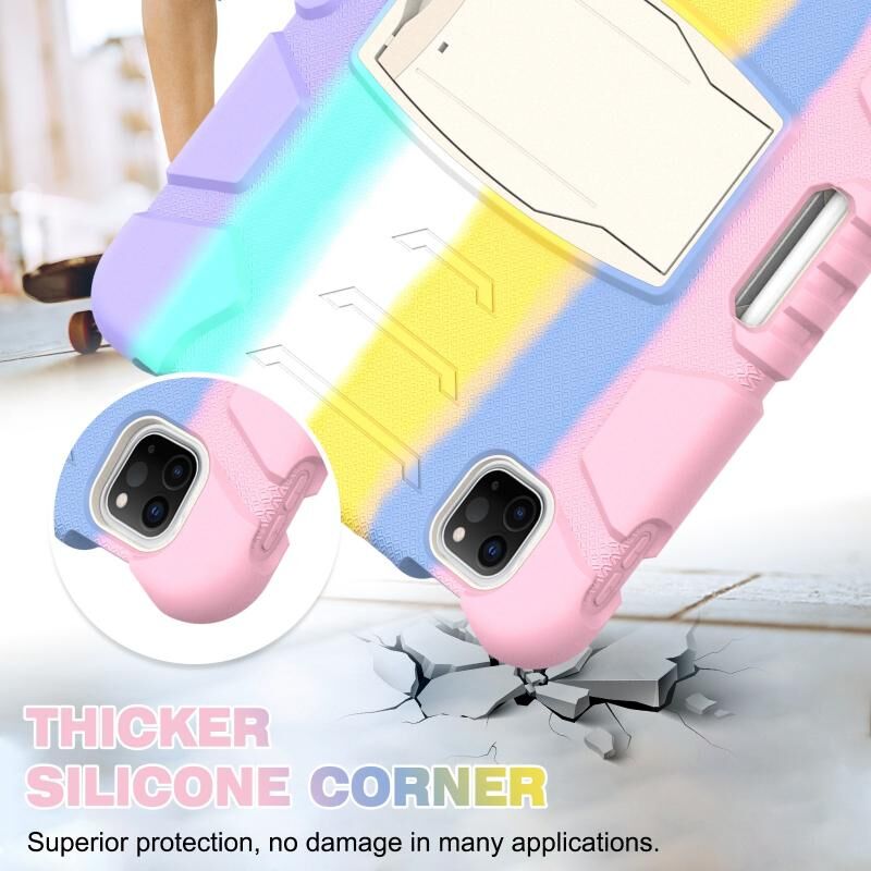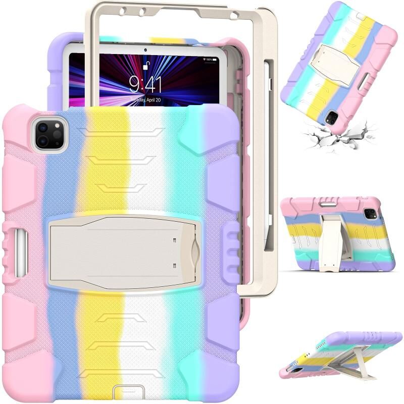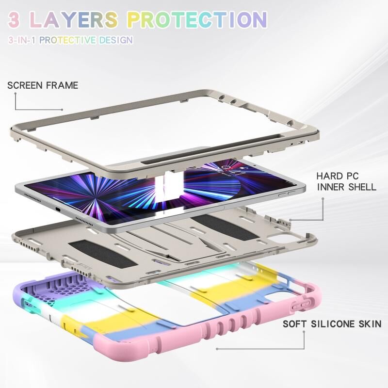 For iPad Pro 11 2022 / 2021 / 2020 / 2018 3-Layer Protection Screen Frame + PC + Silicone Shockproof Combination Tablet Case with Holder(Colorful Pink)
