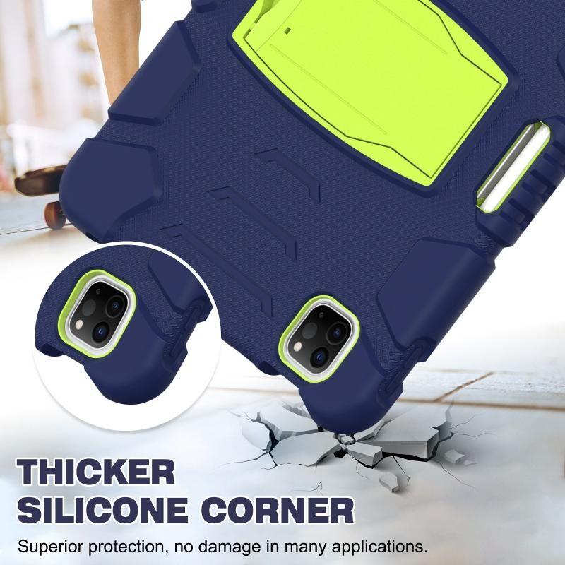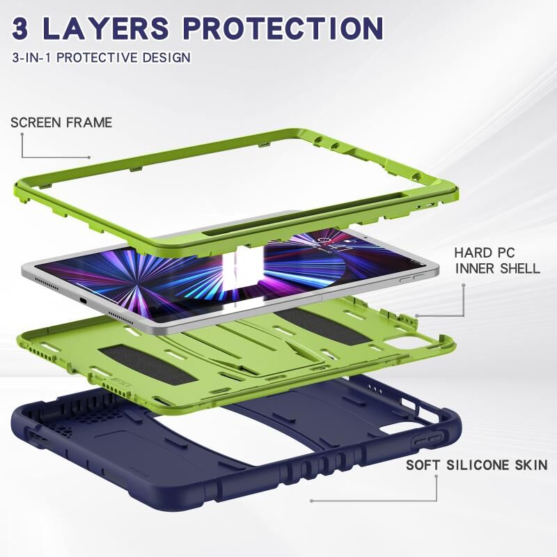 For iPad Pro 11 2022 / 2021 / 2020 / 2018 3-Layer Protection Screen Frame + PC + Silicone Shockproof Combination Tablet Case with Holder(NavyBlue+Lime)