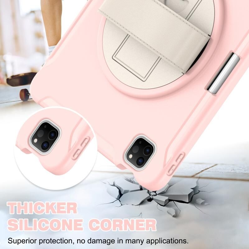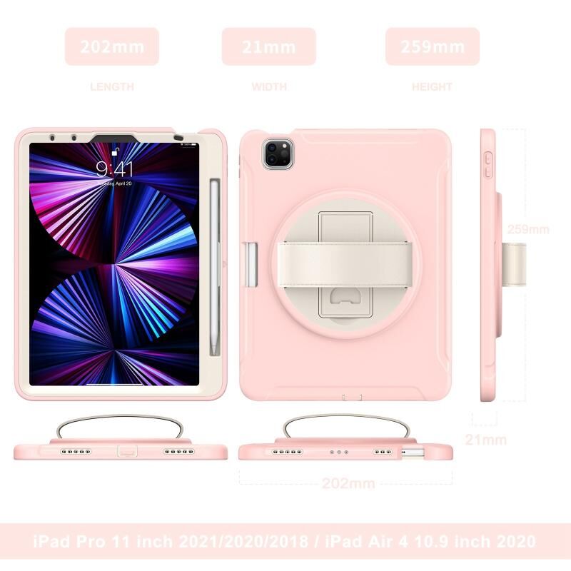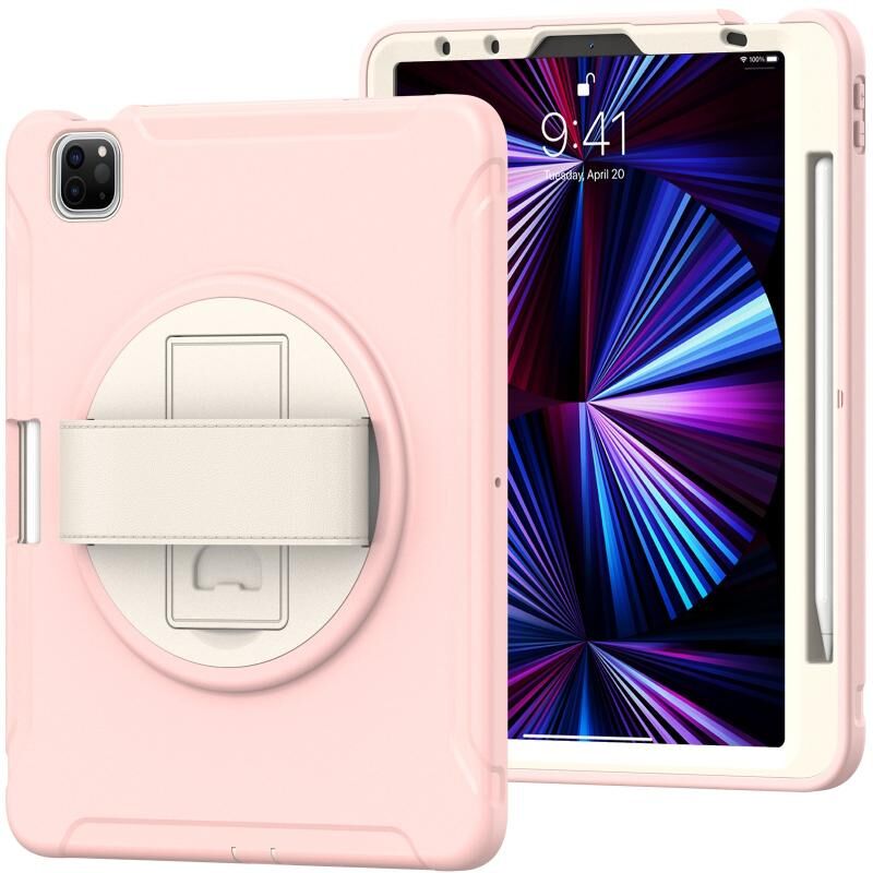 Για iPad Pro 11 2022 / 2021 / 2020 / 2018, θήκη προστασίας tablet από PC + TPU με περιστροφή 360 μοιρών, με βάση στήριξης, λουρί χειρός & υποδοχή για στυλό (Ροζ άνθη κερασιάς)