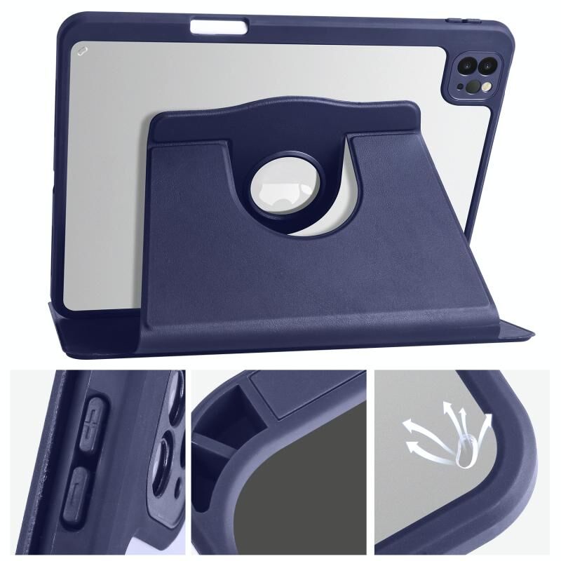 For iPad Pro 11 2022/2021/2020/2018 / Air 10.9 2022 / 10.9 2020 Acrylic 360 Degree Rotation Holder Tablet Leather Case(Dark Blue)