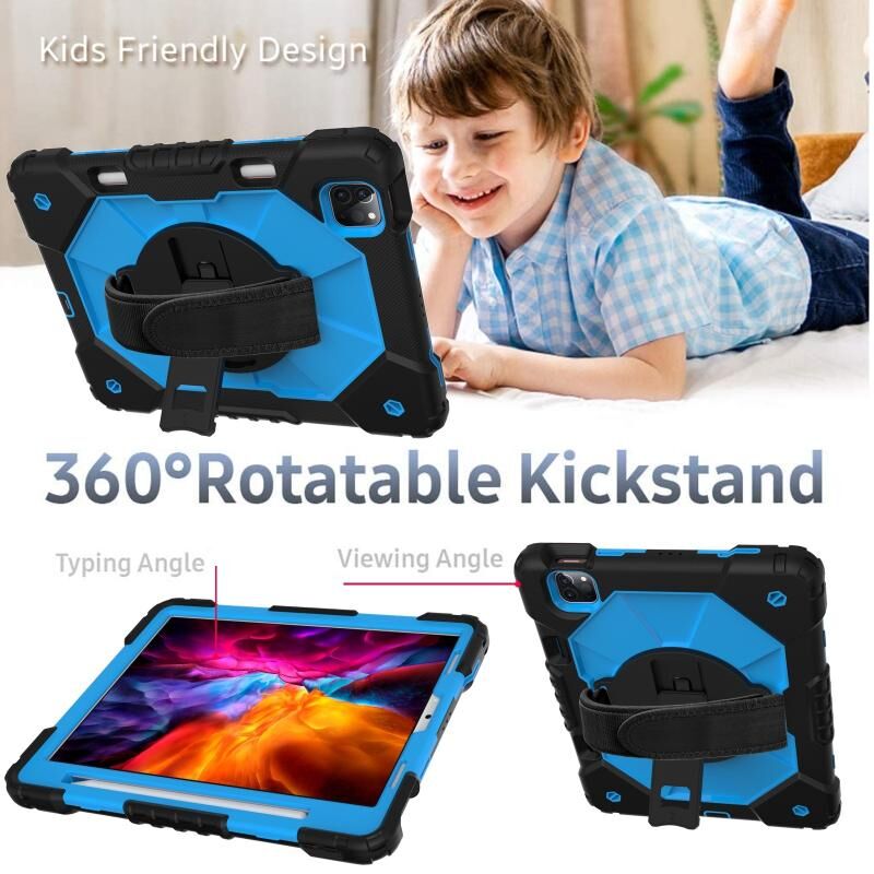 Για iPad Pro 11 2022 / 2021 / 2020 / 2018 / Air 2020 10.9 Θήκη Ταμπλέτας από Σιλικόνη PC με Αντικραδασμική Προστασία και Σχέδιο Ρομπότ, σε Αντιθετικά Χρώματα, με Στήριξη & Λουρί Ώμου (Πολύχρωμο Κόκκινο Μπεζ)