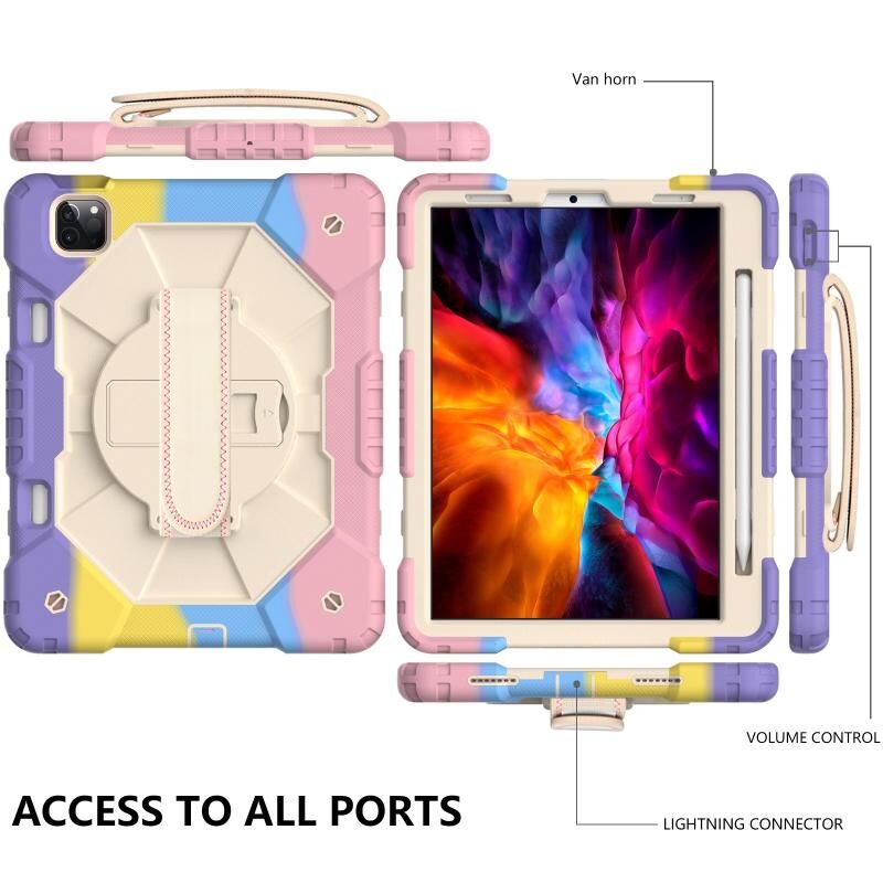 Για iPad Pro 11 2022 / 2021 / 2020 / 2018 / Air 2020 10.9 Θήκη Ταμπλέτας από Σιλικόνη PC με Αντικραδασμική Προστασία και Σχέδιο Ρομπότ, σε Αντιθετικά Χρώματα, με Στήριξη & Λουρί Ώμου (Πολύχρωμο Κόκκινο Μπεζ)