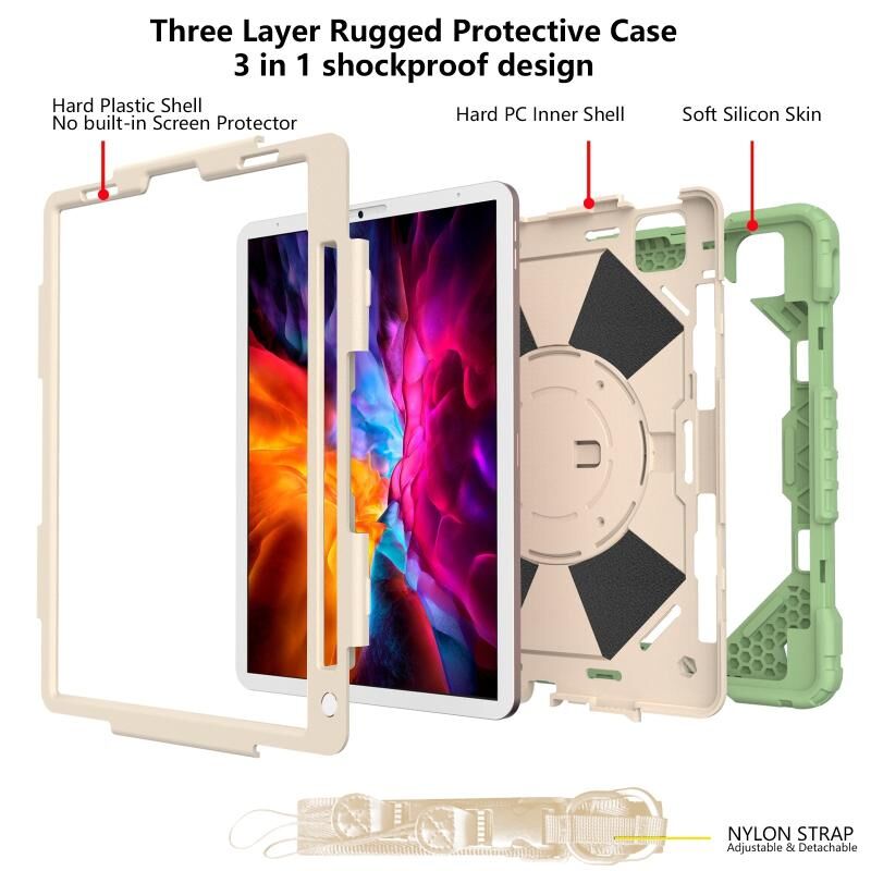 Για iPad Pro 11 2022 / 2021 / 2020 / 2018 / Air 2020 10.9 Θήκη Ταμπλέτας από Σιλικόνη PC με Αντικραδασμική Προστασία και Σχέδιο Ρομπότ, σε Αντιθετικά Χρώματα, με Στήριξη & Λουρί Ώμου (Πολύχρωμο Κόκκινο Μπεζ)