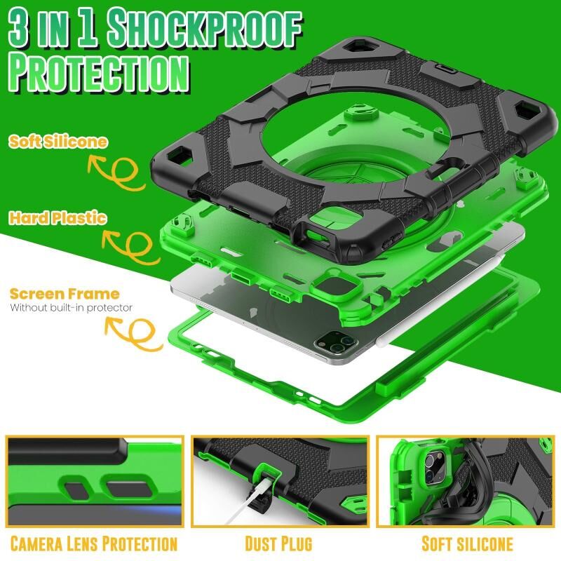 Για iPad Pro 11 2022 / 2021 / 2020 Θήκη Ταμπλέτας Υβριδική από Σιλικόνη και PC με Περιστρεφόμενη Λαβή (Μαύρο)