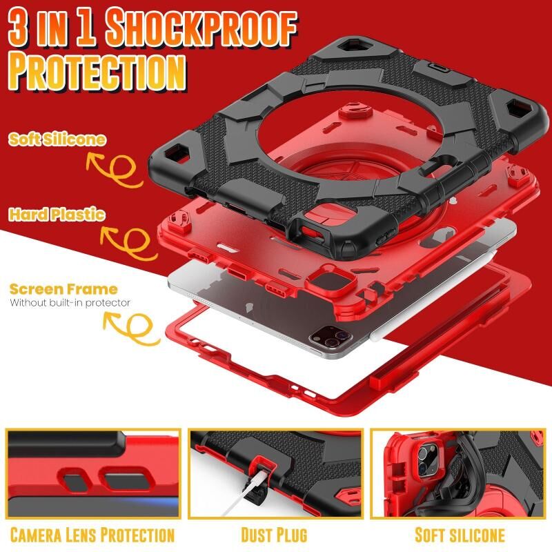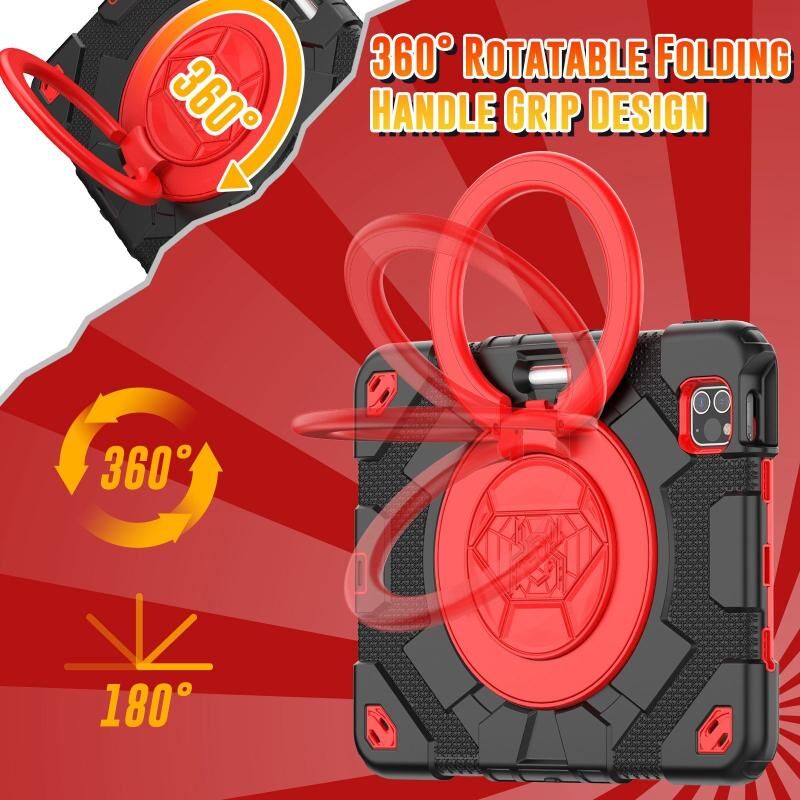 Για iPad Pro 11 2022 / 2021 / 2020 Θήκη Ταμπλέτας Υβριδική από Σιλικόνη και PC με Περιστρεφόμενη Λαβή (Μαύρο)