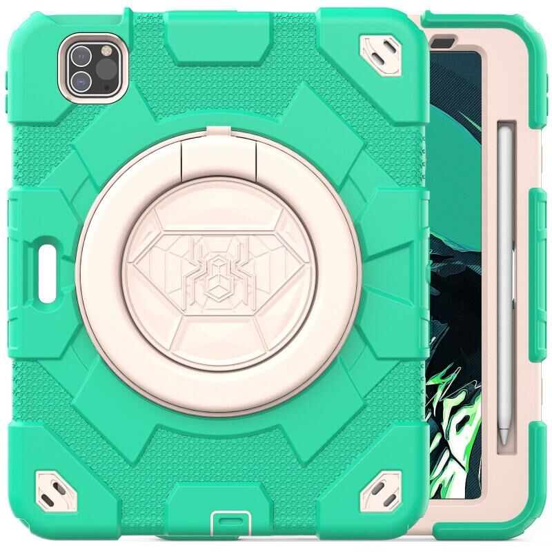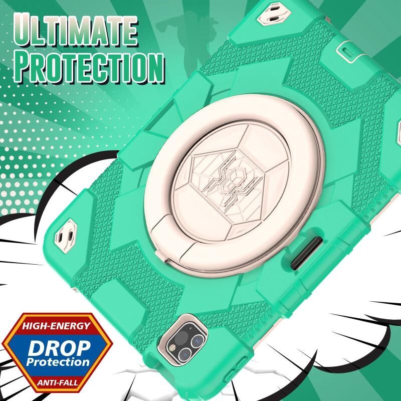 Για iPad Pro 11 2022 / 2021 / 2020 Θήκη Ταμπλέτας Υβριδική από Σιλικόνη και PC με Περιστρεφόμενη Λαβή (Κυανό Μπεζ)
